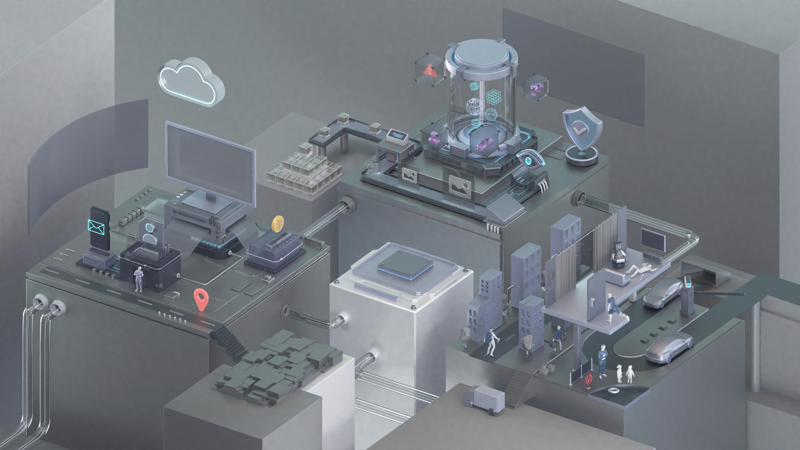 Animation used for on-site sales showroom, to show business process visualization for enterprises, and Company showreel.