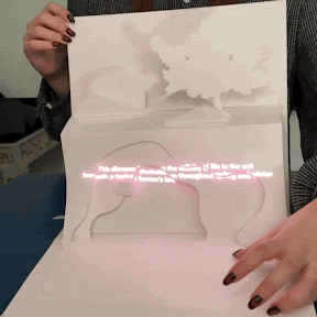 I led the design and iteration of the folding mechanism—testing how each page could rise, layer, and align with projection. We explored various materials and hinge types to ensure smooth transitions, physical stability, and visual clarity.